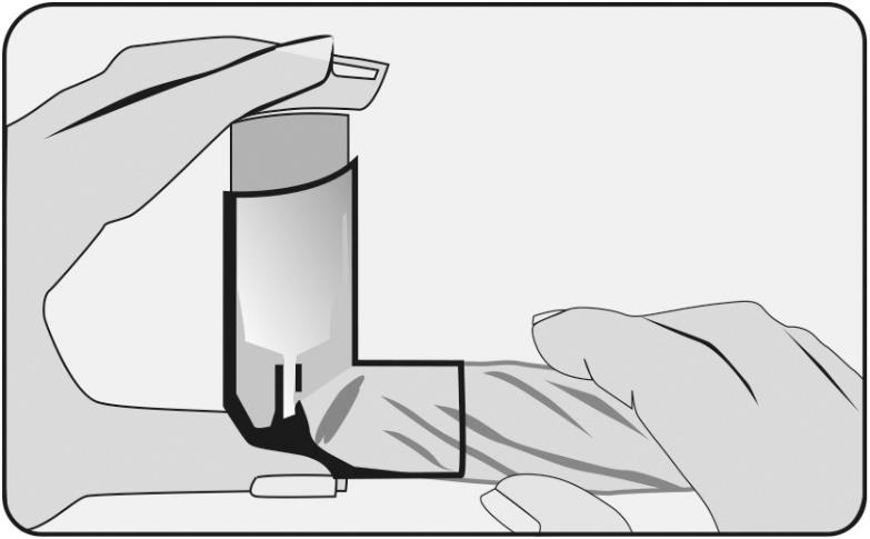 1. zdjąć osłonkę z ustnika, nie wyjmować inhalatora z plastikowej obudowy;